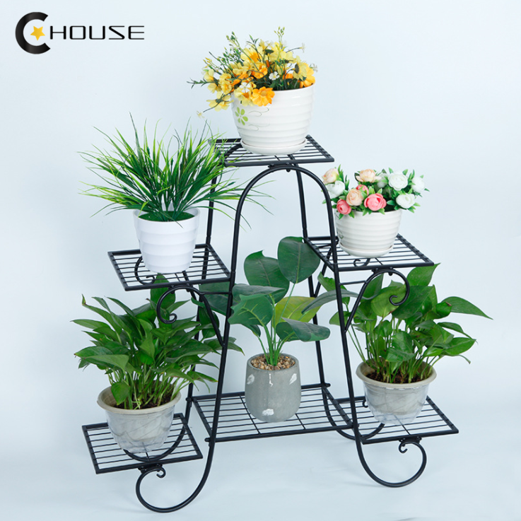 7 Pot Metal Plant Stand Garden Flower Shelves Outdoor Indoor Wrought Iron New Ebay