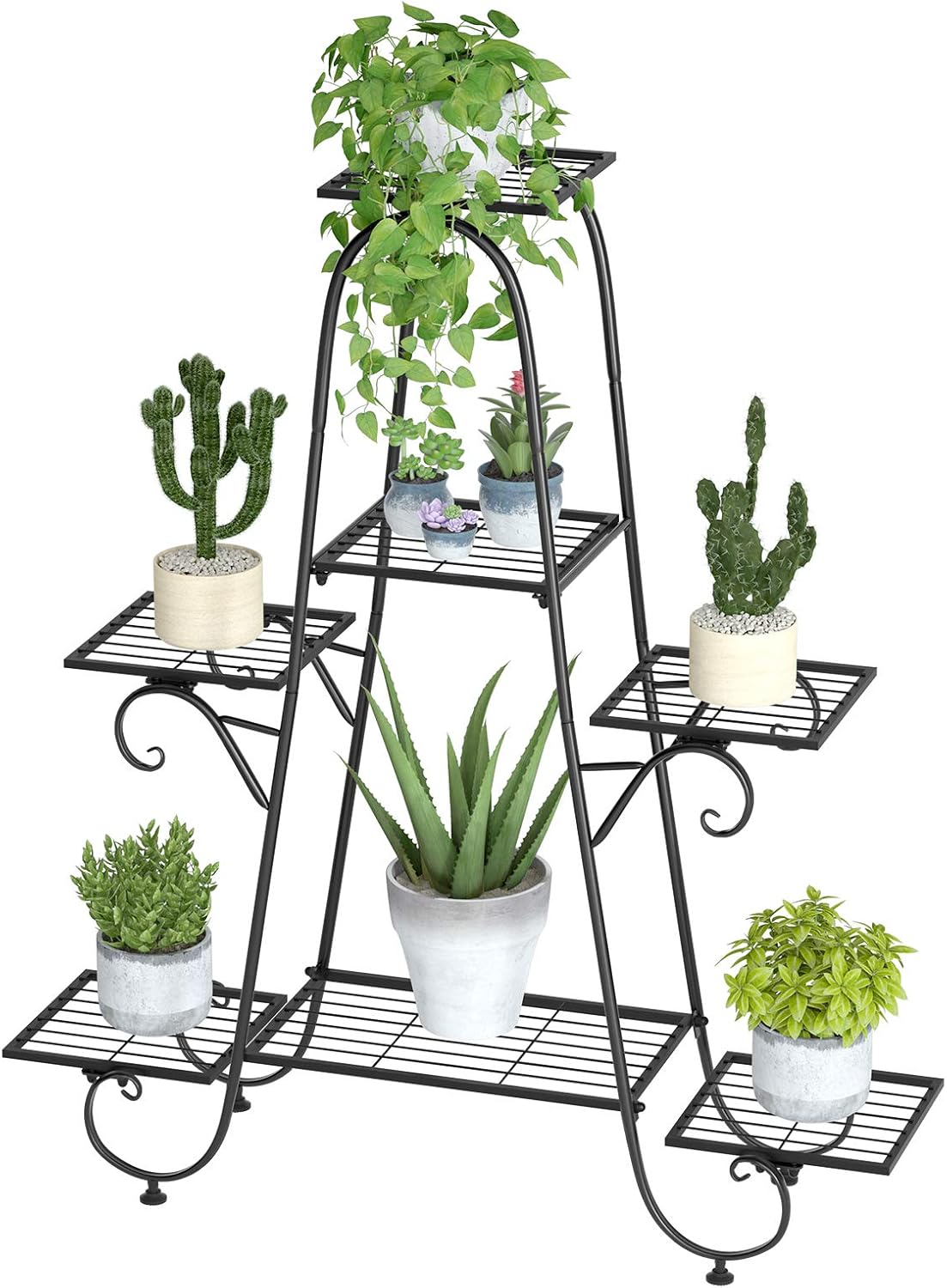 Amazon Com Unho 7 Tier Plant Stands Indoor Metal Plant Shelf Stand Outdoor Multilayer Potted Planters Display Rack Patio Garden Garden Outdoor