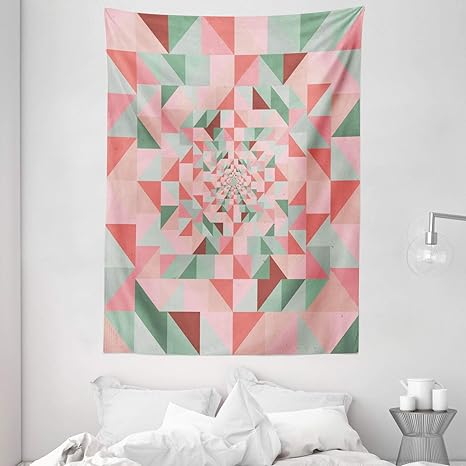 Amazon Com Ambesonne Retro Tapestry Unusual Art Composition Of Geometrical Shapes Triangles Pastel Color Pattern Wall Hanging For Bedroom Living Room Dorm Decor 60 X 80 Green Pink Coral Home Kitchen