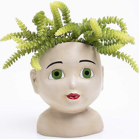 Amazon Com Head Planter Pot Face Planters For Indoor And Outdoor Plants Unique Garden Planters Resin Succulent Face Planter For Succulents Open Green Eyes Female Head Planter