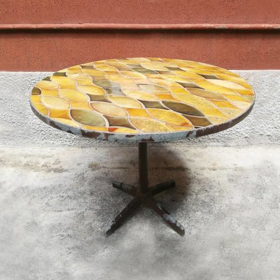 French Mid Century Round Table With Vallauris Ceramic And Metal Base For Sale At Pamono