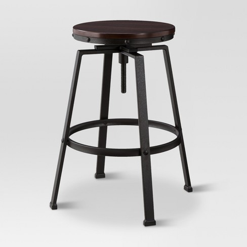 Adjustable height swivel bar stools are the most common types of bar stools today. Besides incorporating hydraulic components that make raising or lowering your stool a cinch these attractive convenient designs feature a rotating seat that makes it easy to get in and outsomething especially appealing to homeowners with high bars and. Varek Wood and Rust Finished Steel Adjustable Swivel Barstool Brown - BaxtonStudio.