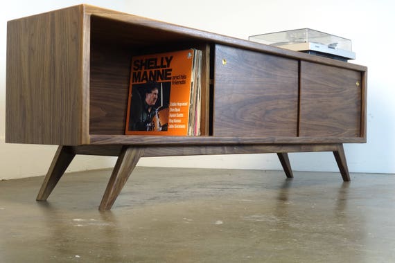 The Stella-J is a mid century modern TV console credenza TV stand mcm modern minimal record player. The Stella-J credenza is hand built out of walnut in a classically mid-century modern style. From clutter-concealing bar cabinets and entertainment consoles to angular coffee tables and bookcases find storage pieces that fit a minimalist aesthetic.