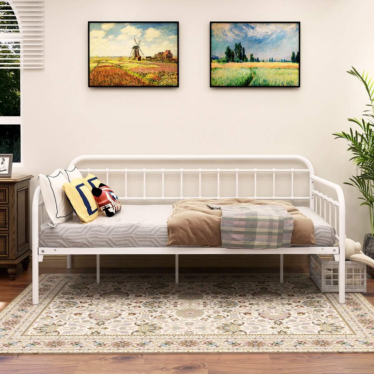 Amazon Com Jurmerry Metal Daybed Frame Twin Size With Steel Slats Platform Furniture Textured White Furniture Decor