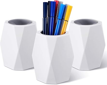 Amazon Com 3 Pieces Silicone Pencil Holder White Geometric Pen Cup Makeup Brush Holder Desktop Stationery Organizer Pen Container For Office Home School Supplies Office Products