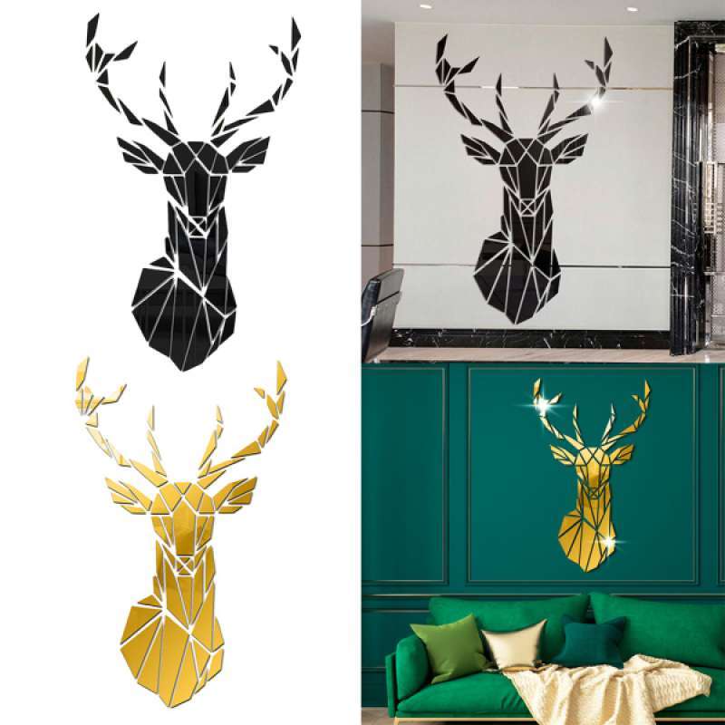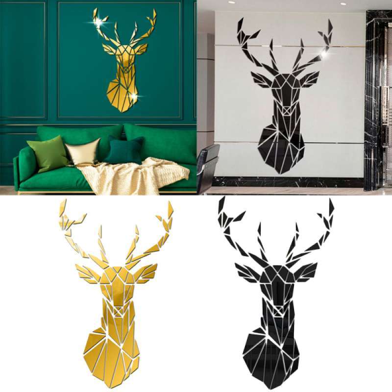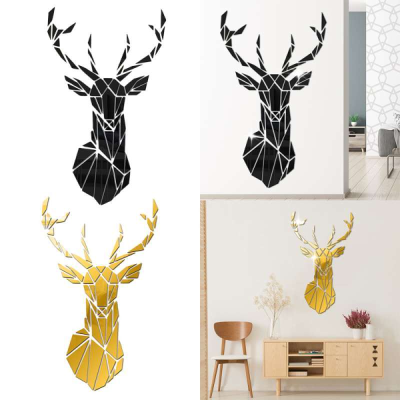 Jual Acrylic Deer Mirror Tiles Wall Sticker Decal Home Bedroom Decor Black Golden Online April 2021 Blibli