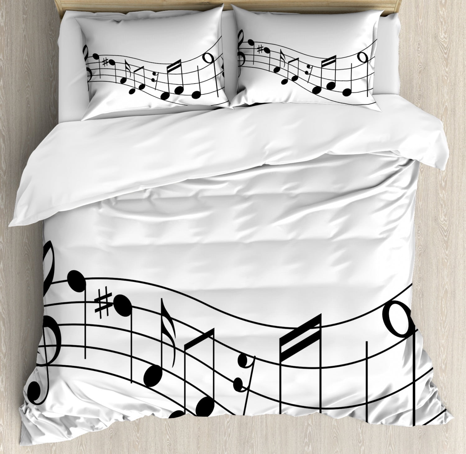 Music Note Duvet Cover Set Educational Graphic Print Of Notations Learning Sounds And Rhythm Decorative Bedding Set With Pillow Shams Charcoal Grey And White By Ambesonne Walmart Com Walmart Com