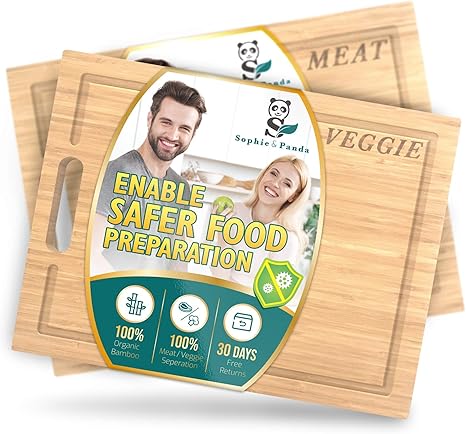 Amazon Com Sophie Panda Organic Bamboo Cutting Boards For Kitchen Enable Cleaner And Safer Food Preparation Set Of 2 Chopping Board To Separate Cutting Meat From Veggie Cool Unique