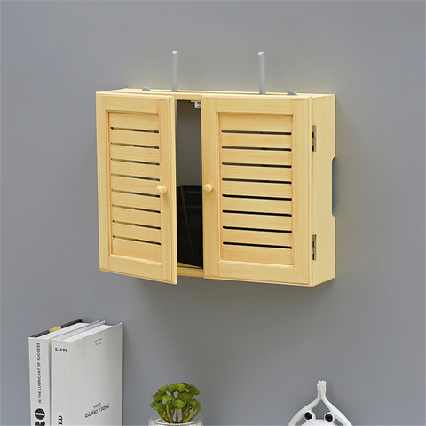 Amazon Com Solid Wood Wireless Router Storage Box Wall Mounted Wifi Power Wire Storage Shelf Wall Shielding Box Free Punching Home Kitchen