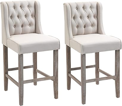 Amazon Com Homcom 40 Counter Height Barstools Tufted Wingback Armless Dining Kitchen Upholstered Chair With Rubber Wood Legs Set Of 2 Ivory Furniture Decor