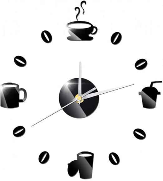 Amazon Com Mmlzlz Coffee Cups Kitchen Wall Clock Modern Design Quartz Silent Clocks Motionless Home Decoration Decorative Sticker For Living Room Black 47 Inches Home Kitchen