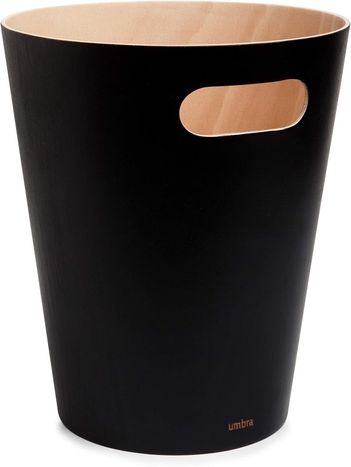 Amazon Com Umbra 082780 045 Woodrow 2 Gallon Modern Wooden Trash Can Wastebasket Or Recycling Bin For Home Or Office Black Home Kitchen
