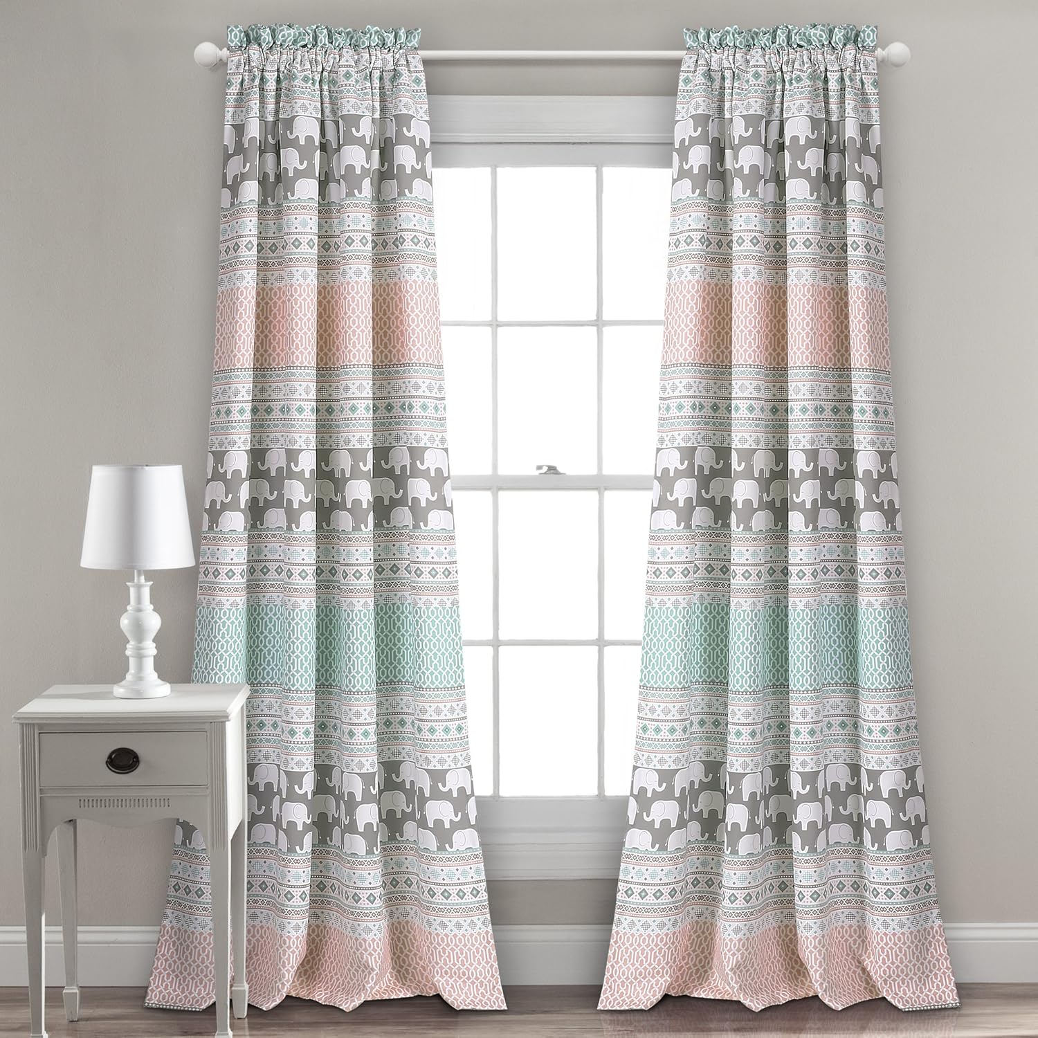 Amazon Com Lush Decor Elephant Stripe Curtains Pattern Room Darkening Window Panel Set For Living Dining Bedroom Pair 84 X 52 Turquoise Pink Home Kitchen