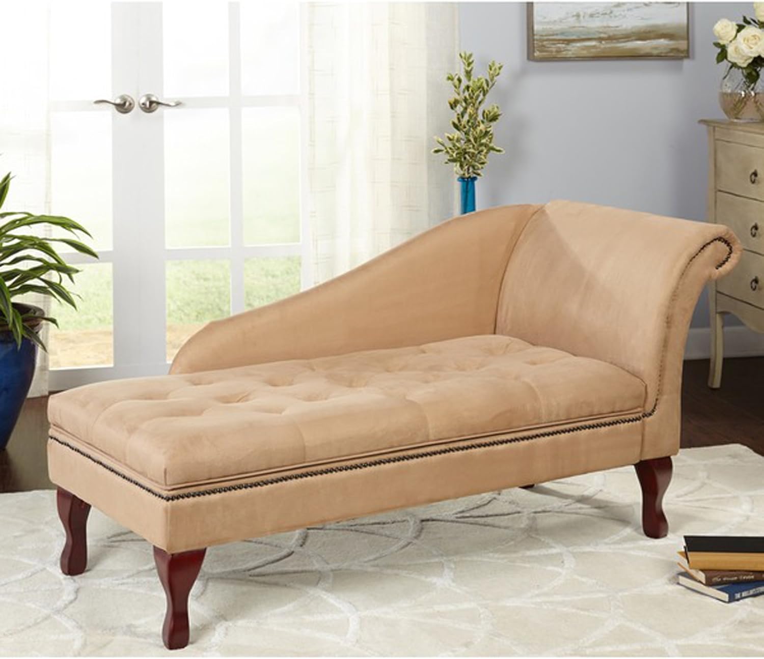 Amazon Com Storage Chaise Lounge Contemporary Lift Up Tufted Seat Chair Microfiber Upholstered And Foam Filling Nailhead Trim Mahogany Legs Great For Your Living Room Tan Furniture Decor