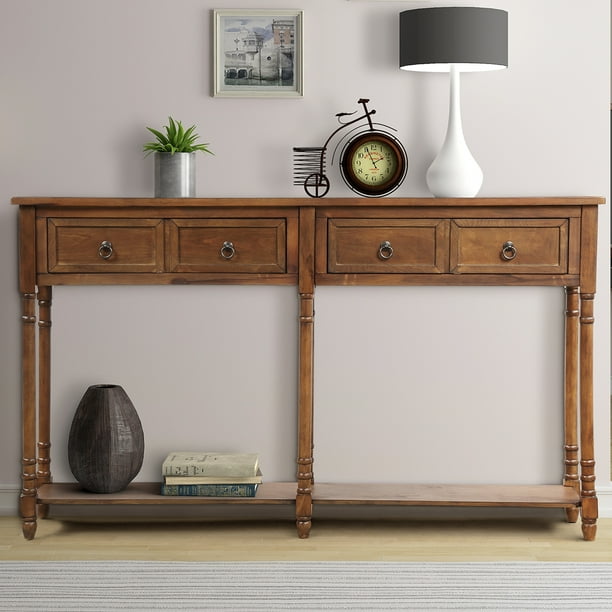 Hommoo Retro Console Table For Entryway Sofa Table With Drawers And Shelf Antique Walnut Walmart Com Walmart Com