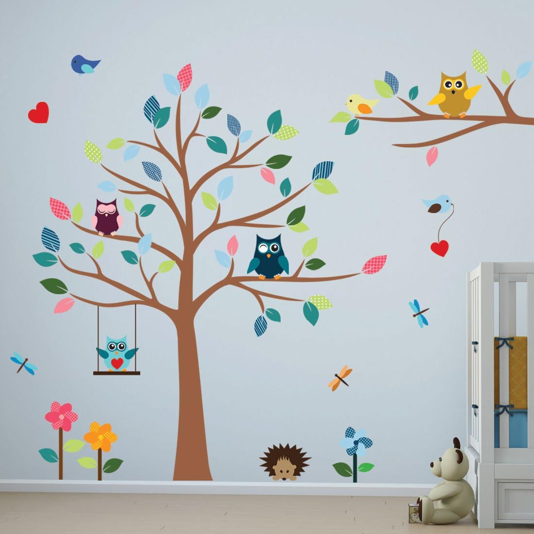 Amazon Com Timber Artbox Cheerful Nursery Wall Decals With Owls Tree Best Decor For Kids Room Nursery Playroom Kitchen Dining