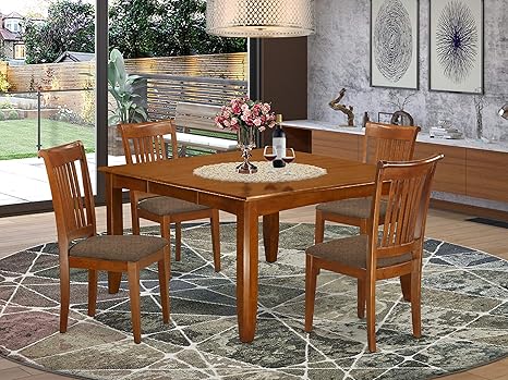 Amazon Com 5 Pc Dining Room Set For 4 Square Dining Table With Leaf And 4 Dining Chairs Furniture Decor
