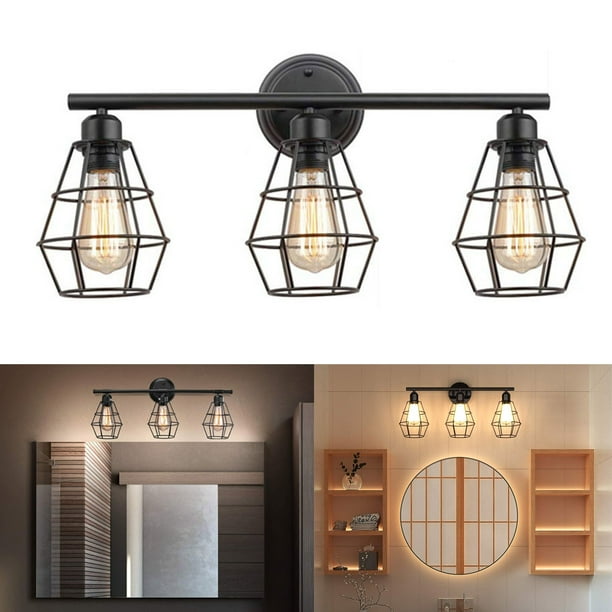 Create For Life 3 Light Industrial Bathroom Vanity Light Black Metal Cage Wall Sconce Bathroom Lighting Vintage Edison Wall Lamp Fixture For Mirror Cabinets Vanity Table Amazon Com