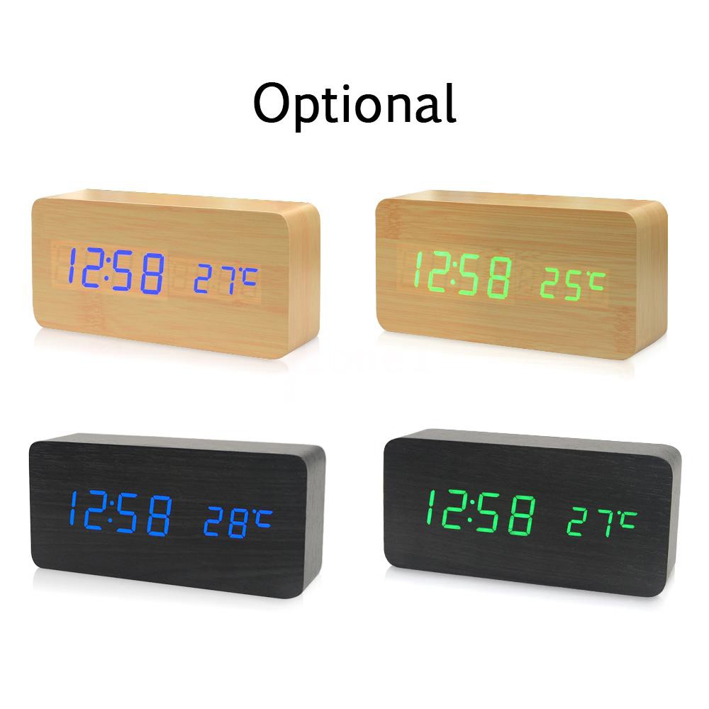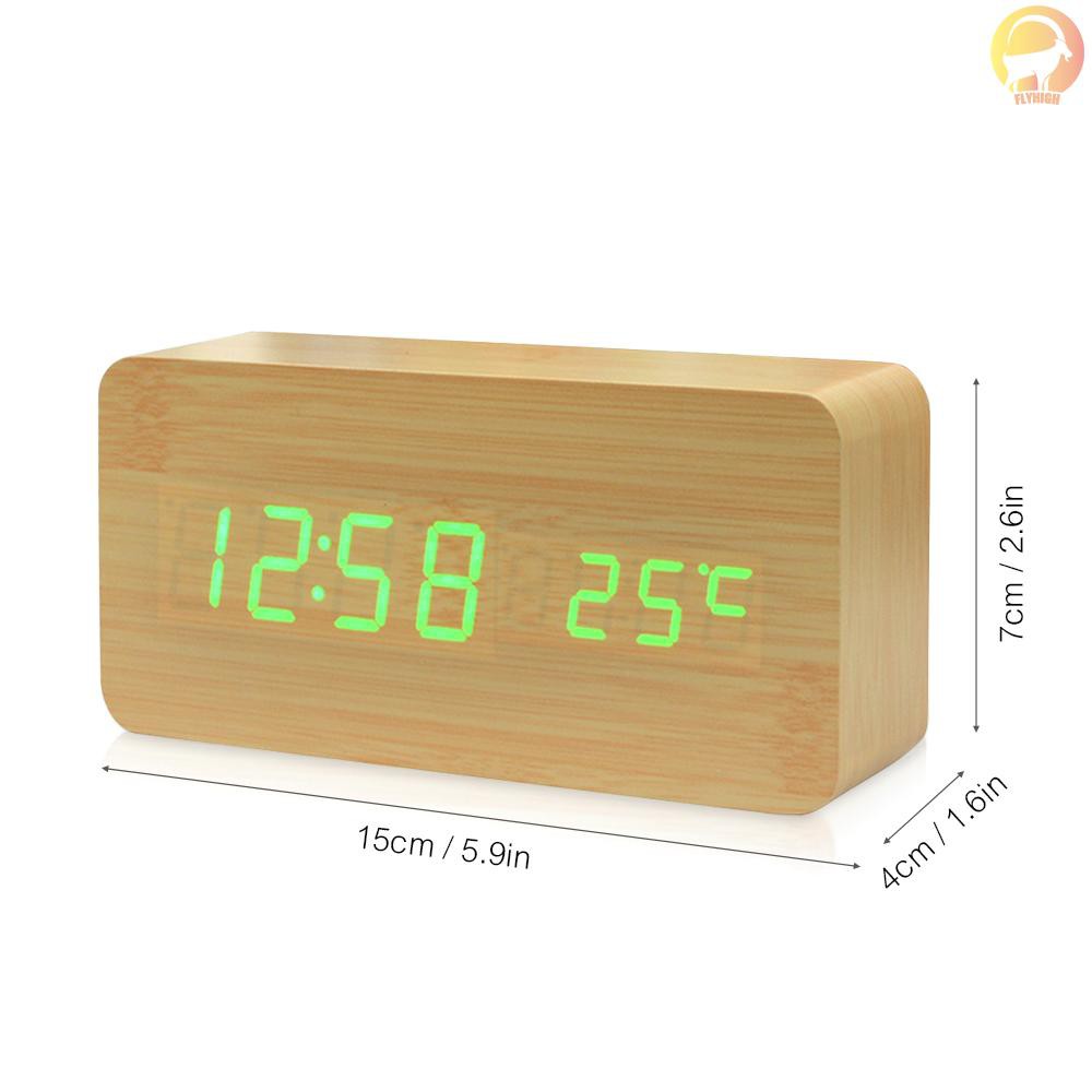 F H Electronic Led Digital Wooden Alarm Clock Time Temperature Date Display Desktop Clock 3 Levels Brightness Voice Control Usb Charge Or Battery Supply Natural Wood Shopee Indonesia