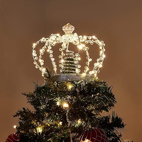 Peiduo Christmas Jeweled Crown Tree Topper Adapter Plug In With 60 Warm White Lights Led Light Up Tree Topper Decoration For Christmas Tree 809022c Amazon Ca Home Kitchen