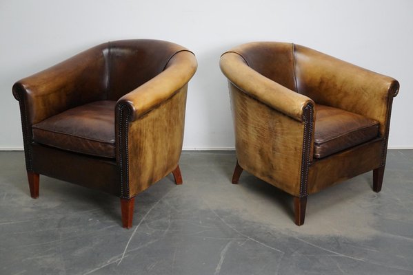 Vintage Dutch Brown Leather Club Chairs Set Of 2 For Sale At Pamono