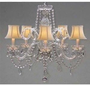 Crystal Chandelier With Large White Shade 40Mm Crystal. Loosely dangling crystals which will beautifully sparkle are a nice accent of the piece. 5 Light Chandelier with Shade.