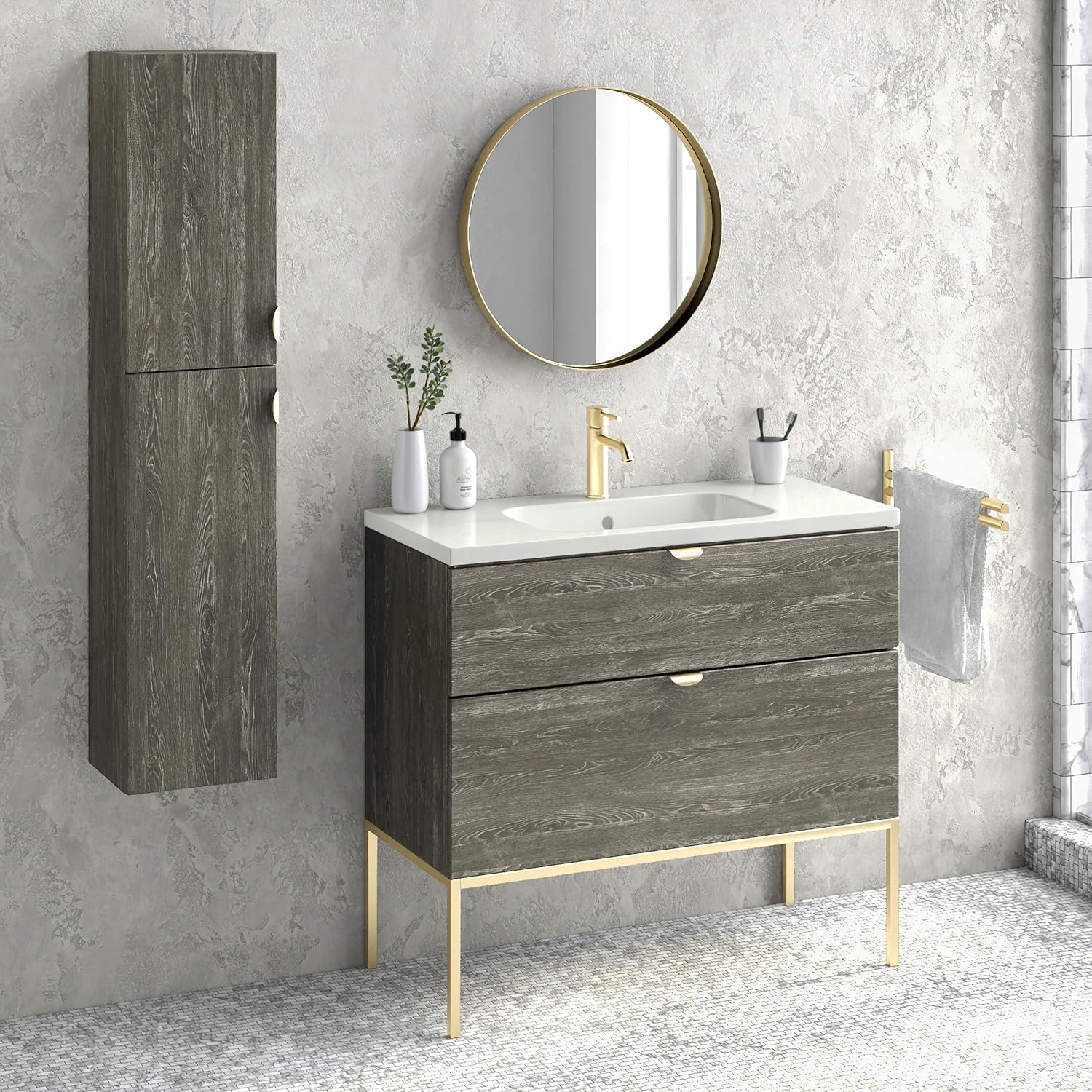 Brilliantly and uniquely designed with metal-capped legs. Bathroom Vanity Sets Other considerations include whether you want a complete vanity set or a vanity on its own. WS Bath Collections Ambra 40 Single Vanity Set with Engineered Wood Cabinet Ceramic Vanity Top with Integrated Sink Side Cabinet and Mirror Model.